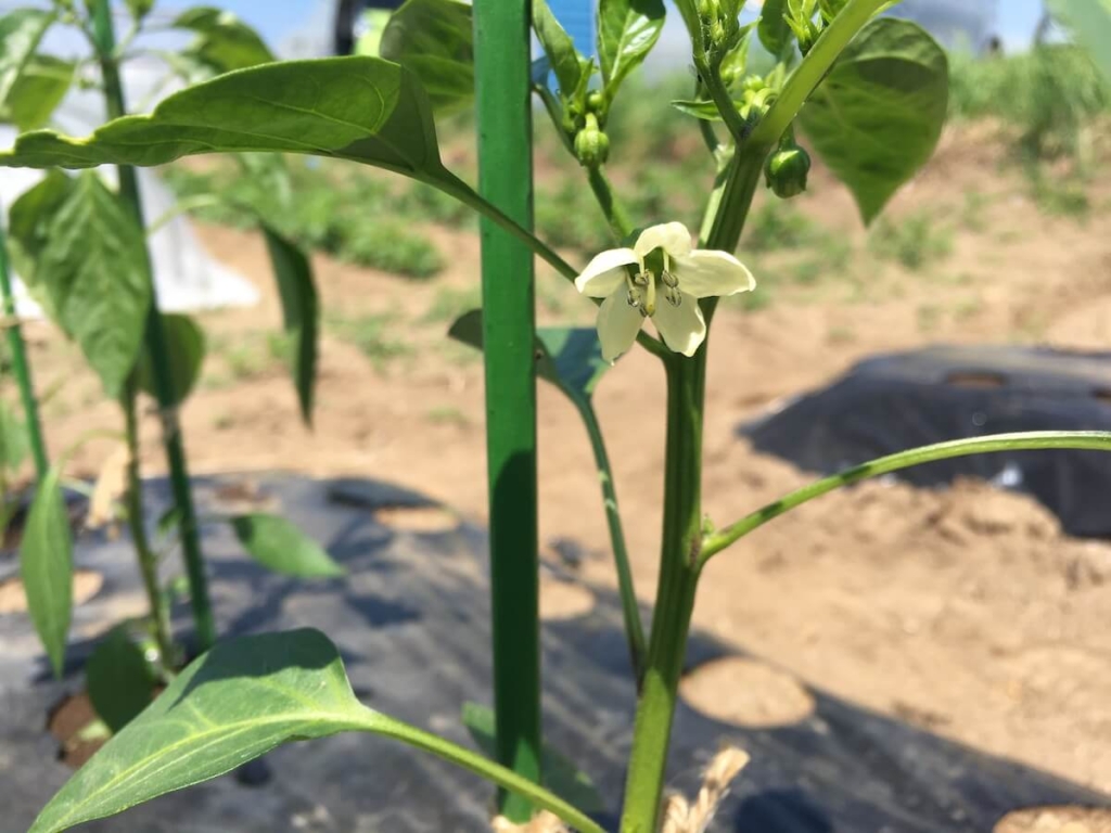 この日様子を見に行ったところ、さっそくピーマンが花を咲かせていました。